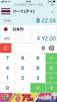 92円 タイバーツに両替 23バーツ