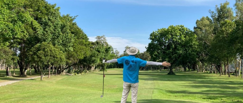 ランナーゴルフ場一番コースの一番ホール、月曜日の午前8時15分、プレイヤーが誰もいません。これが雨季の6月。何年経ってもゴルフ超初心者の域から抜け出せない人がコースで人様に迷惑をかけないで遊べるのはこの時期しかないのです。